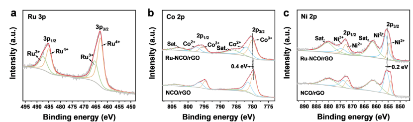 XPS tehnologija može duboko analizirati elementarni sastav, kemijska stanja i elektroničku strukturu površina katalizatora. Kada je površina katalizatora ozračena X-zrakama, elektroni površinskih atoma su pobuđeni. Detektiranjem energije i količine tih fotoelektrona možemo odrediti vrstu i sadržaj elementa, kao i kemijsku okolinu u kojoj se element nalazi. Na primjer, pri proučavanju metalnih katalizatora na nosaču, XPS može točno odrediti oblik metala na površini nosača, radi li se o metalnom elementu ili metalnom oksidu, te promjene u njegovom oksidacijskom stanju. Ovo je vrlo važno za razumijevanje aktivnosti i mehanizma deaktivacije katalizatora. Kao što je prikazano na slici 5, XPS je korišten za demonstraciju sastava i valentnih stanja elemenata Ru, Co i Ni. Fini XPS spektri specifičnih elemenata u uzorku korišteni su za određivanje pozitivnog/negativnog pomaka energije vezanja, što ukazuje na postojanje elektroničkih interakcija.