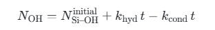 Među njima, khyd je konstanta brzine hidrolize, kcond je konstanta brzine dehidracijske kondenzacije i vrijeme obrade. Ovaj model može kvantitativno opisati trend evolucije hidroksilnih skupina s toplinskom obradom ili mokrom toplinskom obradom.